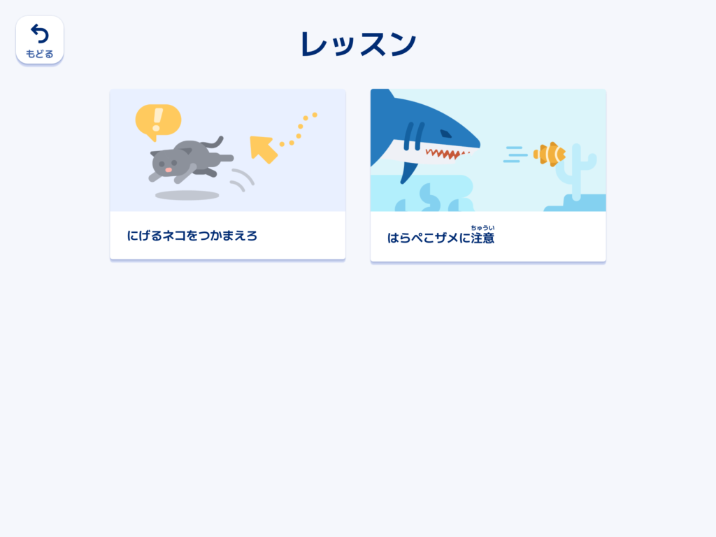 次の「はらぺこサメにきをつけろ」では、少し応用もできます。