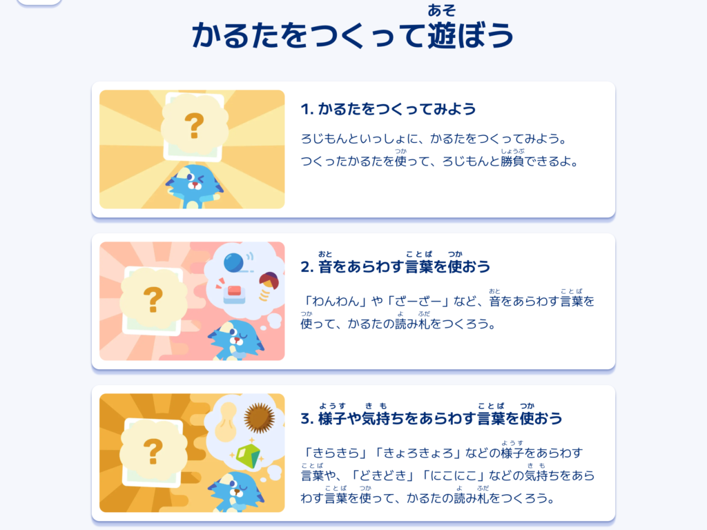 でも、それだけじゃなくて、そのかるたでちゃんと遊べます。