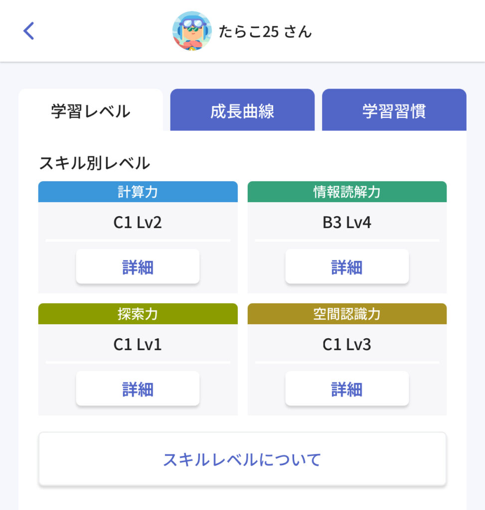 「B3」(小学3年生レベル)~「C1」(小学4年生レベル)の問題にチャレンジできています。