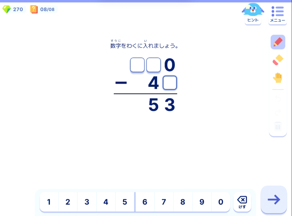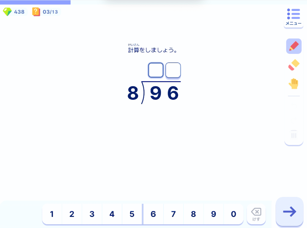 と、直感的に理解をしながら、楽しく計算問題に取り組むことができます。