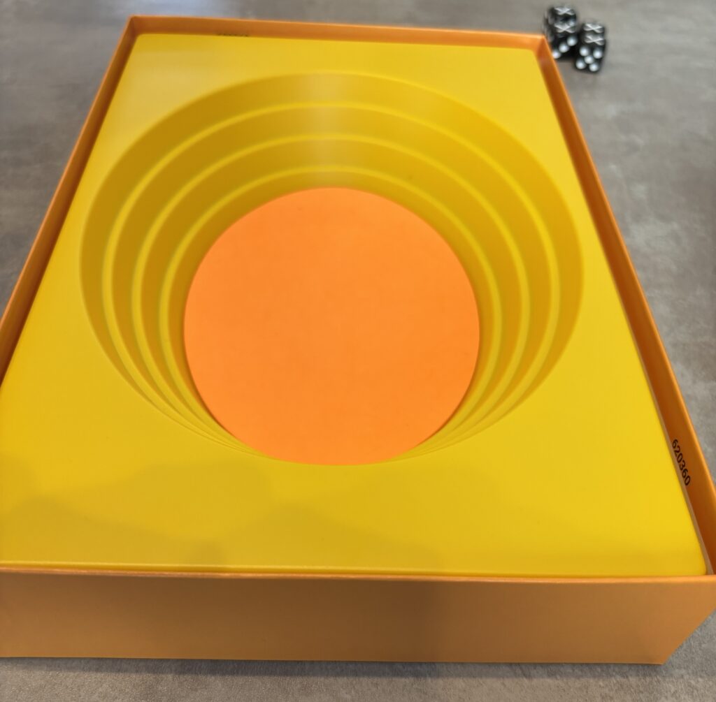 箱を空けると、そこにはたくさんのサイコロと、どでかいステージが!
