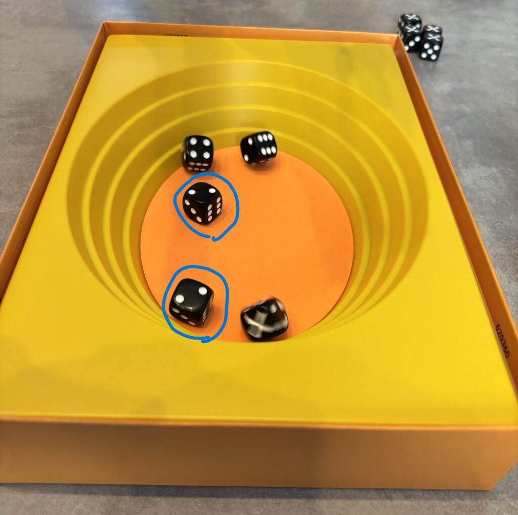 同じ目が出たサイコロを自分の手持ちサイコロに加えます。
