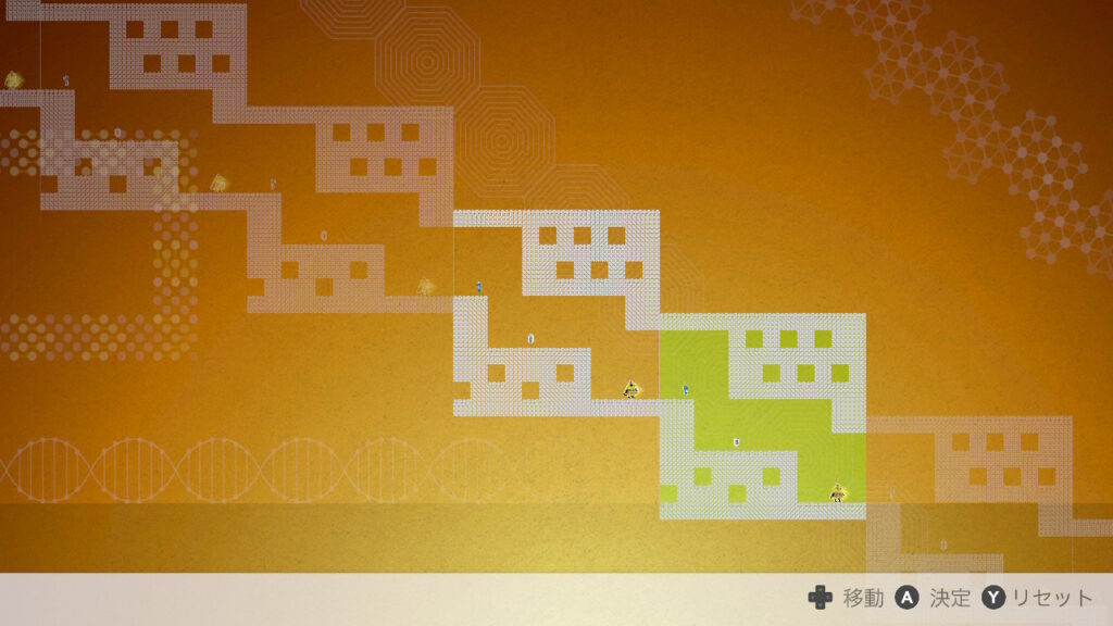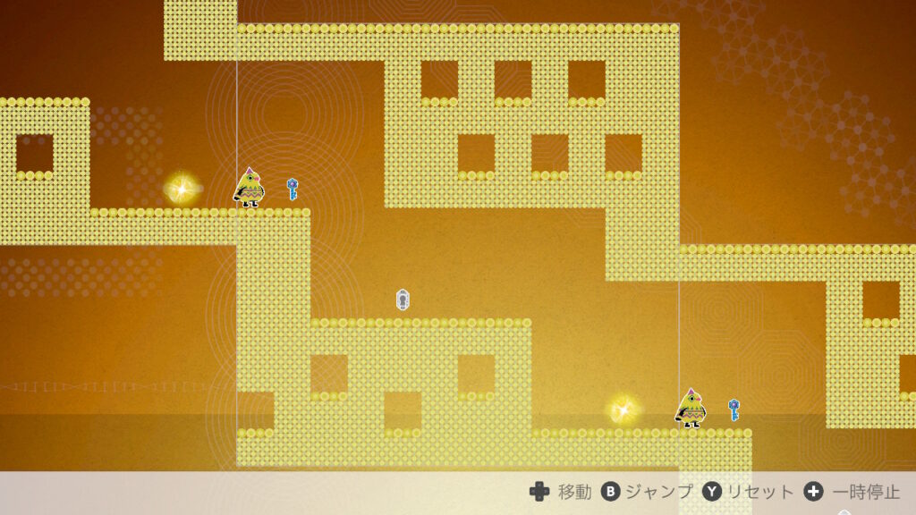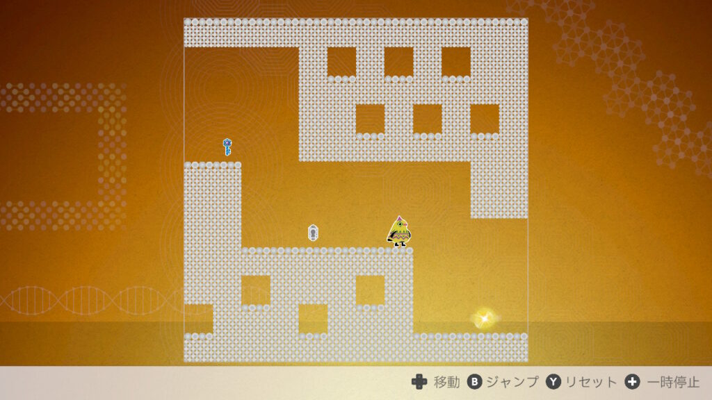 黄色い球に触れると今のステージの周りに同じ形のステージが出現、これをうまくつなげると