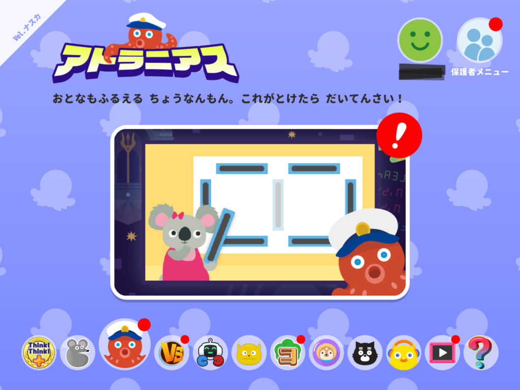 シンクシンクはアプリで「算数・図形の論理的思考」を中心とした答えのある問題。