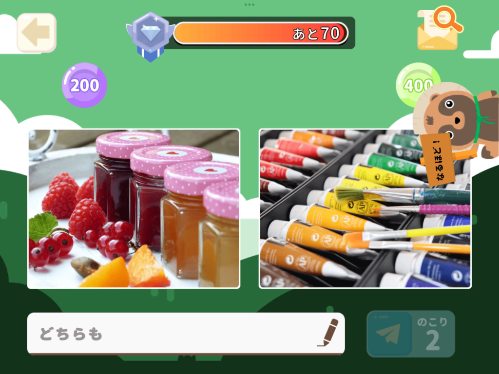 2つの画像を見比べて、「そっくり」なところを探そう!というゲームです。