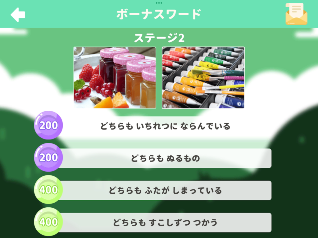 (難しいステージでは、20回の回答権で、6個のボーナスワード)