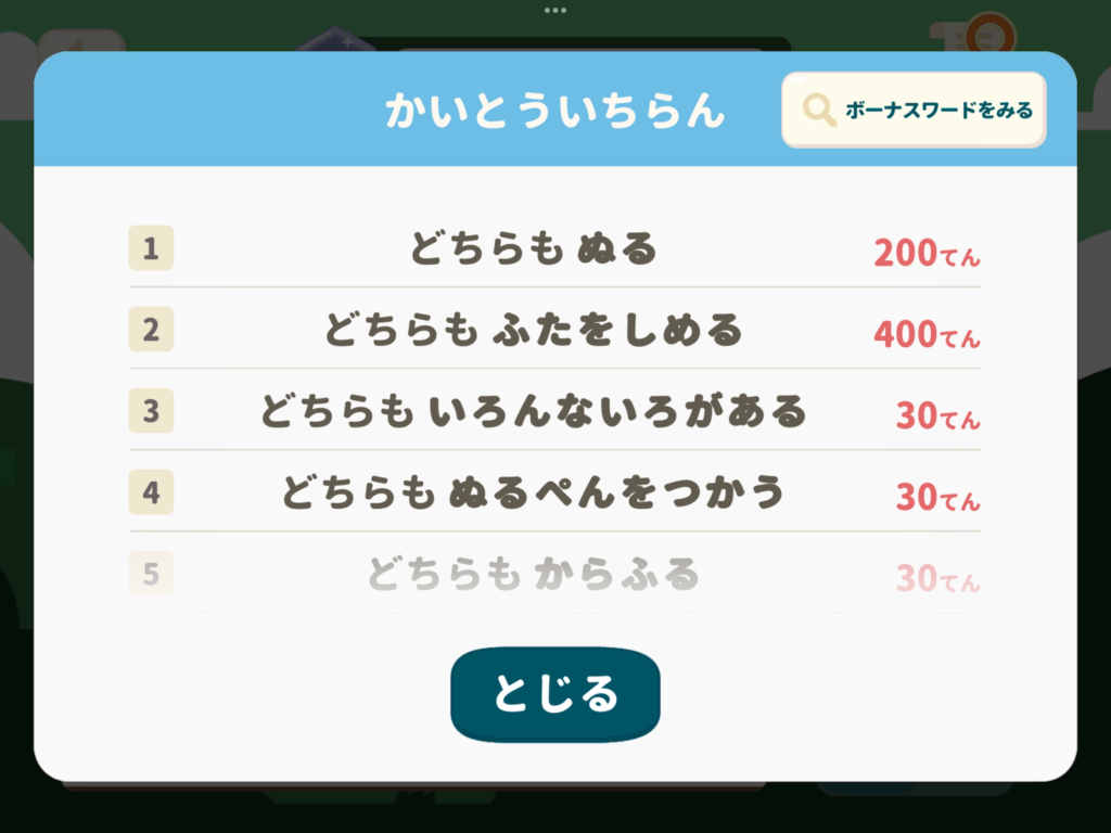 「そっくりさがし」では、ボーナスワードという高得点ワードがあり、