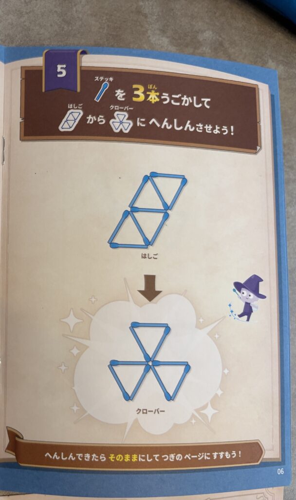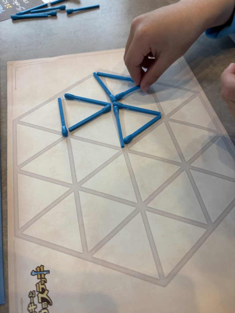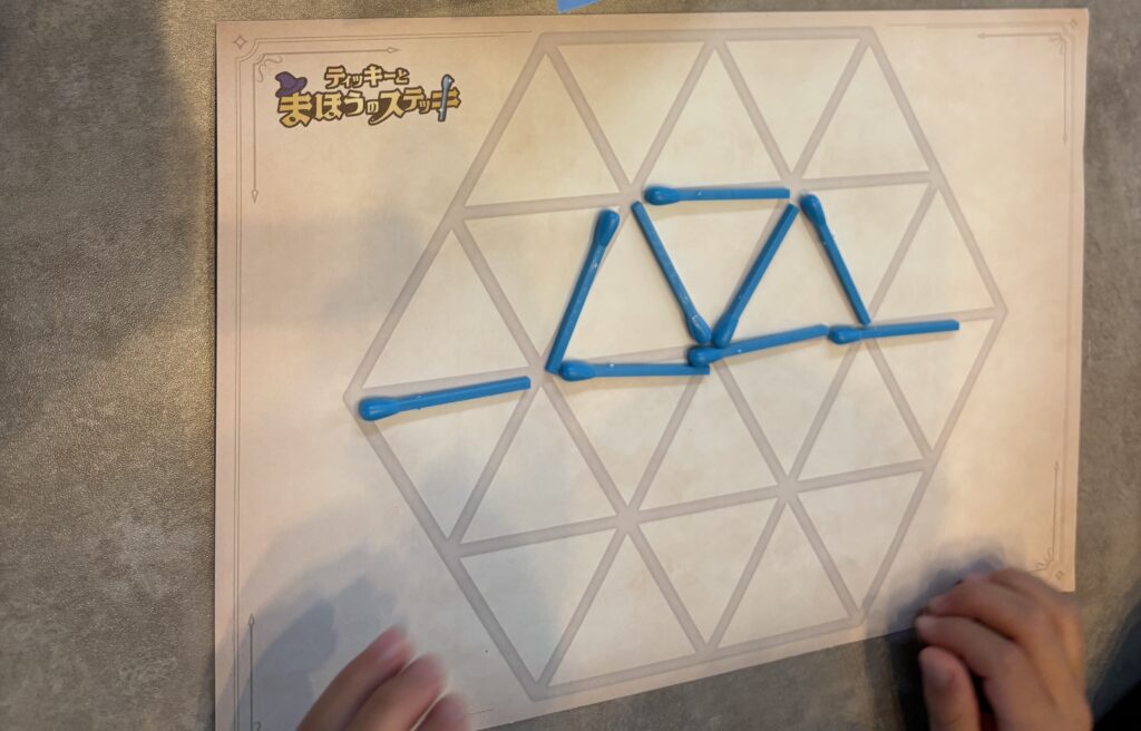 マッチ棒パズルも工夫すれば、どこでだって問題を考えて解くことができますよね。