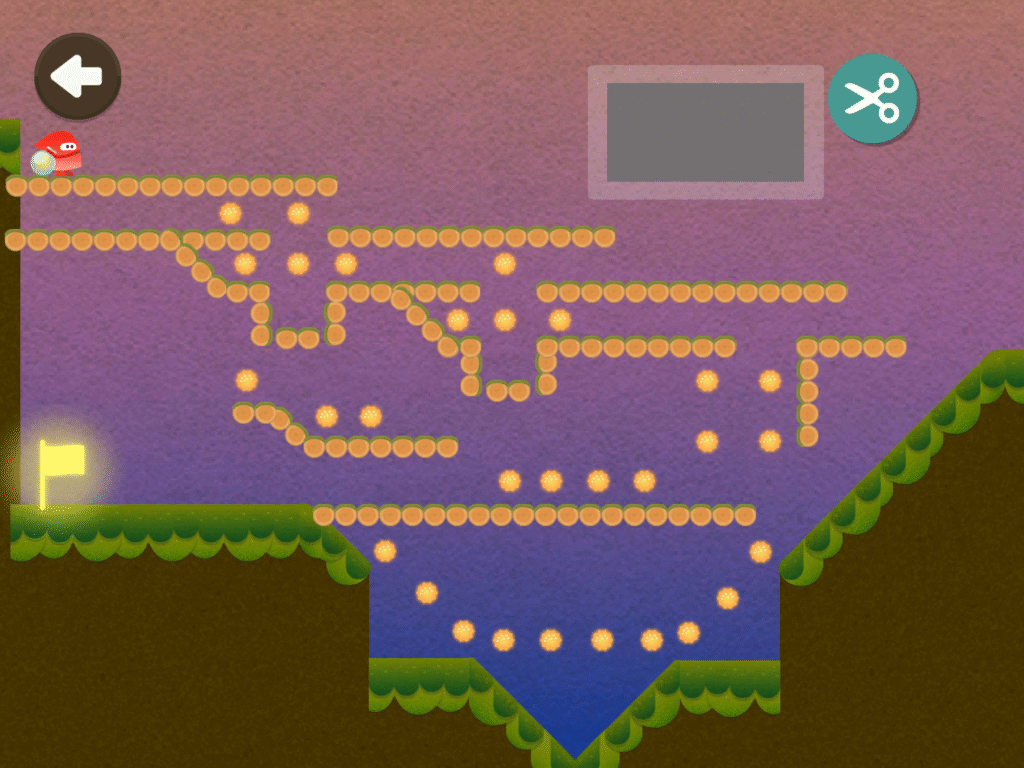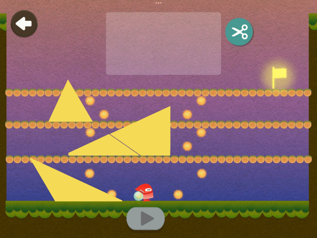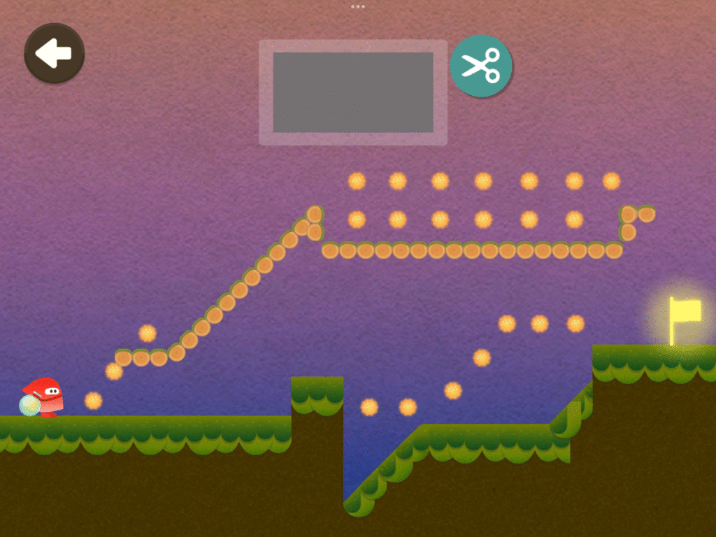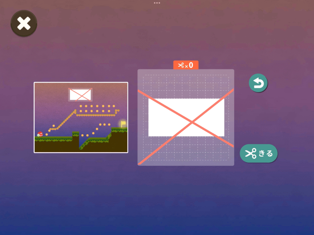 画面上に見える長方形の図形を2回切り出して、ポルトくんの道を作ってあげるのです。